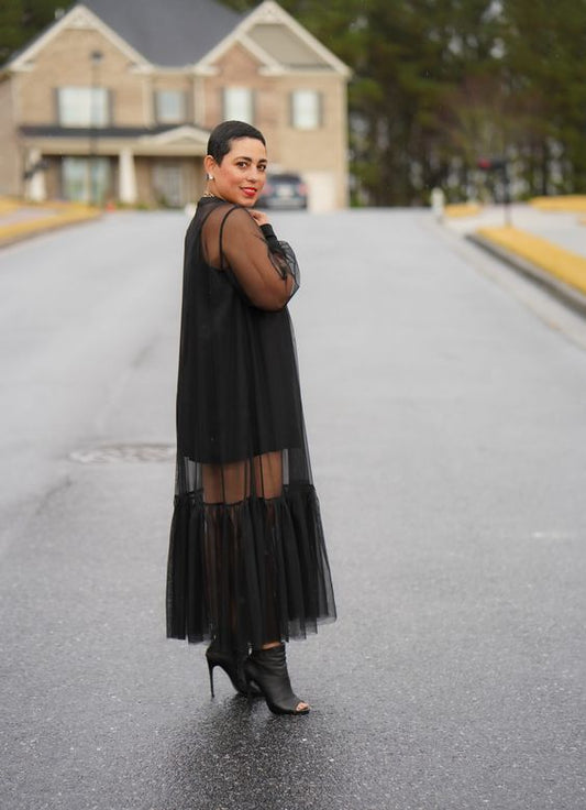 Black Full Sleeves Organza Maxi Dress for Evening Party Wear