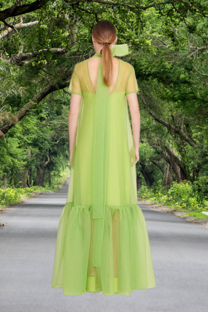 Sheer Green Silk High Neck Organza Beach Wedding Dress