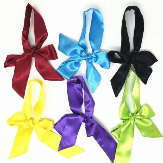 Silk Hair Ribbon Pony Scarf Tie Skinny Scarf Silky head Scarves Ponytail Head Ribbon Neck ChokerHeadband Ribbon Retro Purse Scarf 6 Pc