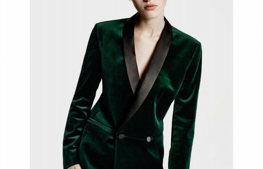 Women Jacket Green Velvet Blazer Tuxedo Wedding Prom Double Breasted Coat Gift For Her