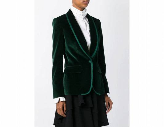 Women Velvet Blazer Wedding Prom Party Wear Slim Fit Green Jacket Coat Gift For Her
