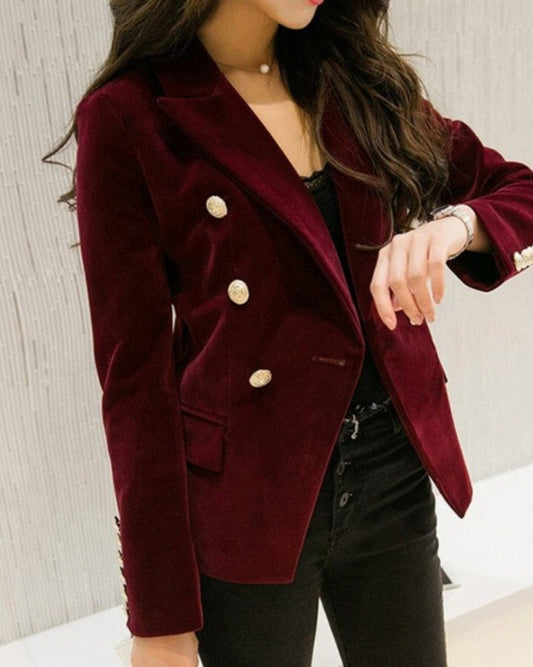 Women Velvet Blazer Event Wedding Party Wear Slim Fit Double Breasted Jacket Coat Gift For Her