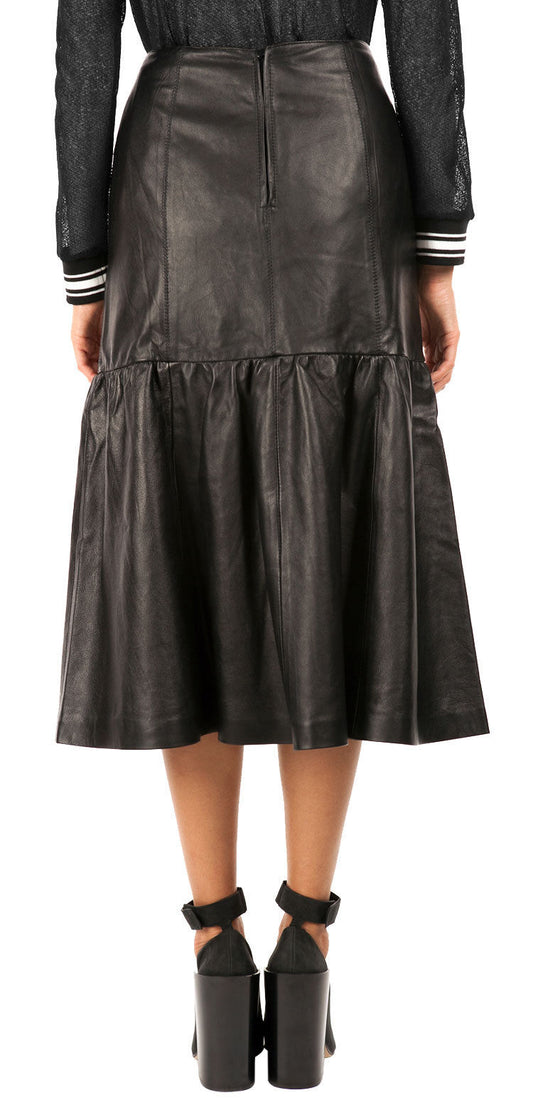 Leather Ruffle Midi Skirt