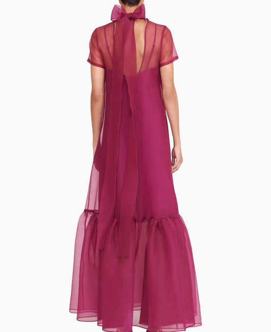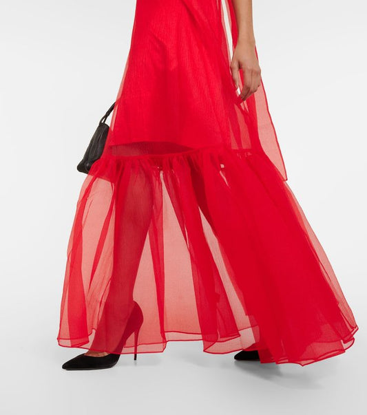 Red Organza Long Dress Bow Closure for Evening Parties