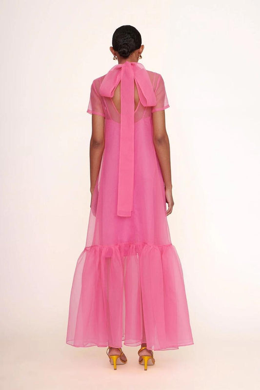 Pink Organza Maxi Dress with Short Sleeves for Baby Shower