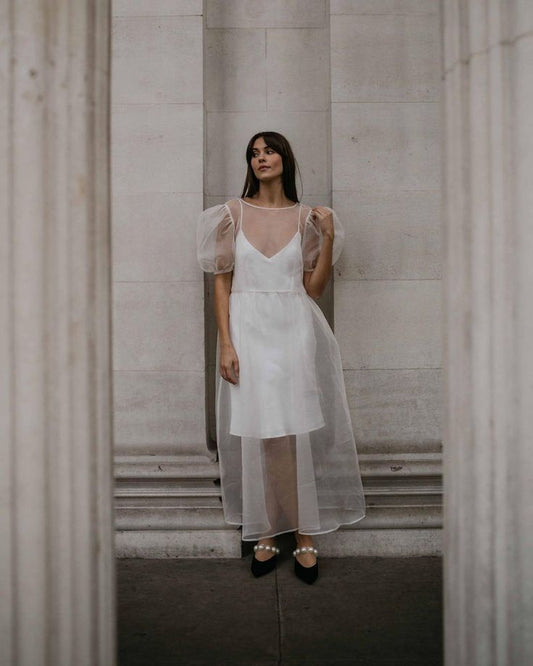 White Organza Midi Dress Evening Party Wear