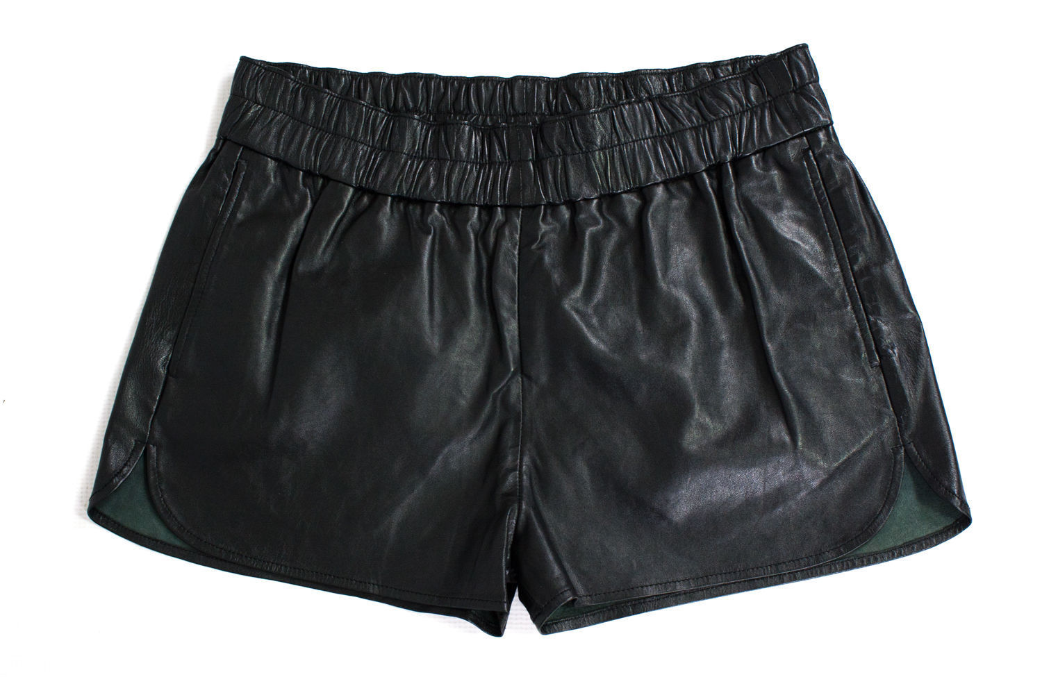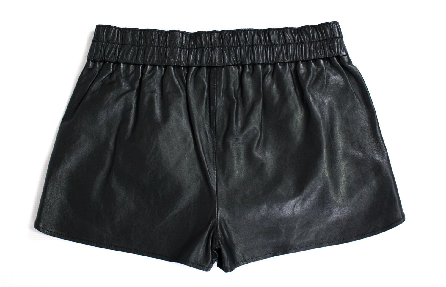 Black Elastic Waist Leather Shorts