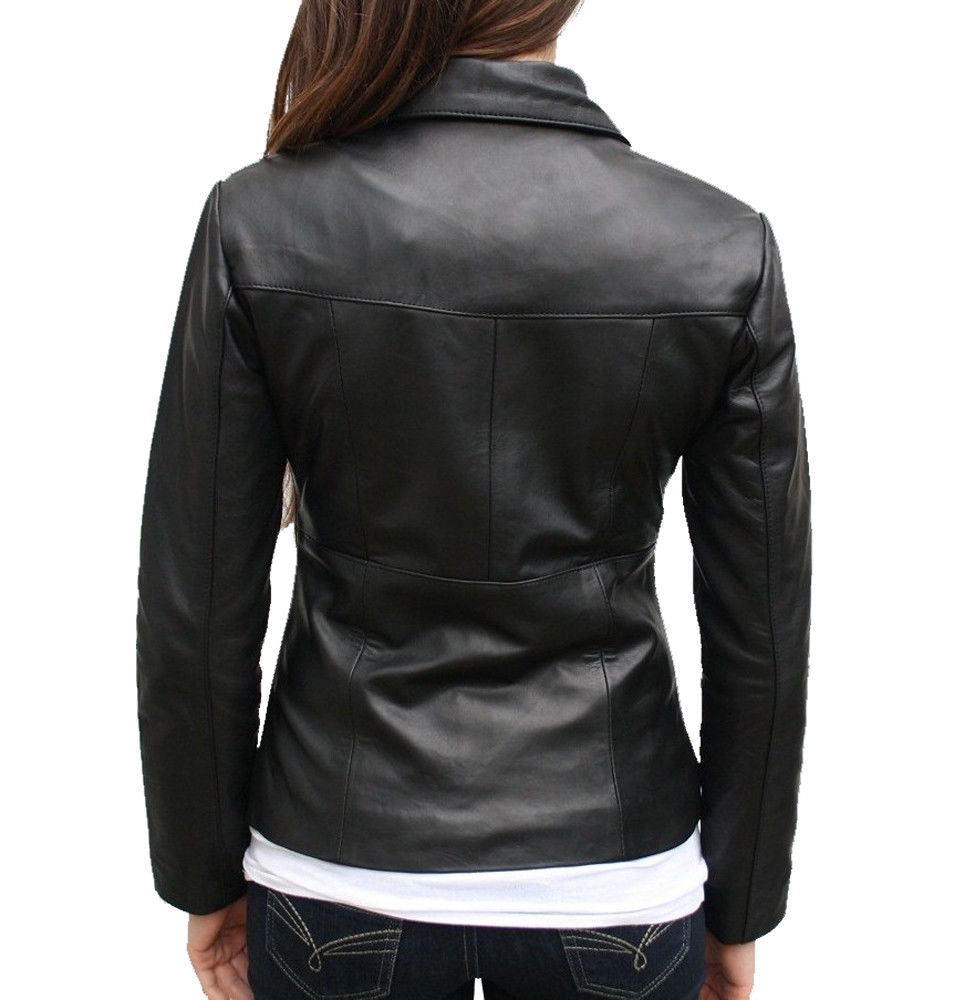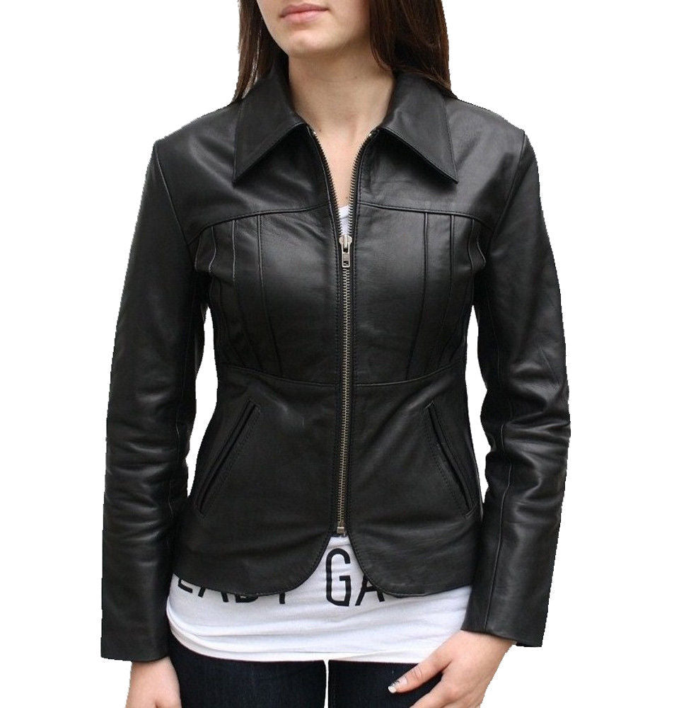 Elevate Your Style with Our Custom-Made Women's Genuine Lambskin Black Handmade Leather Jacket Handcrafted by PRISTINE INDIA