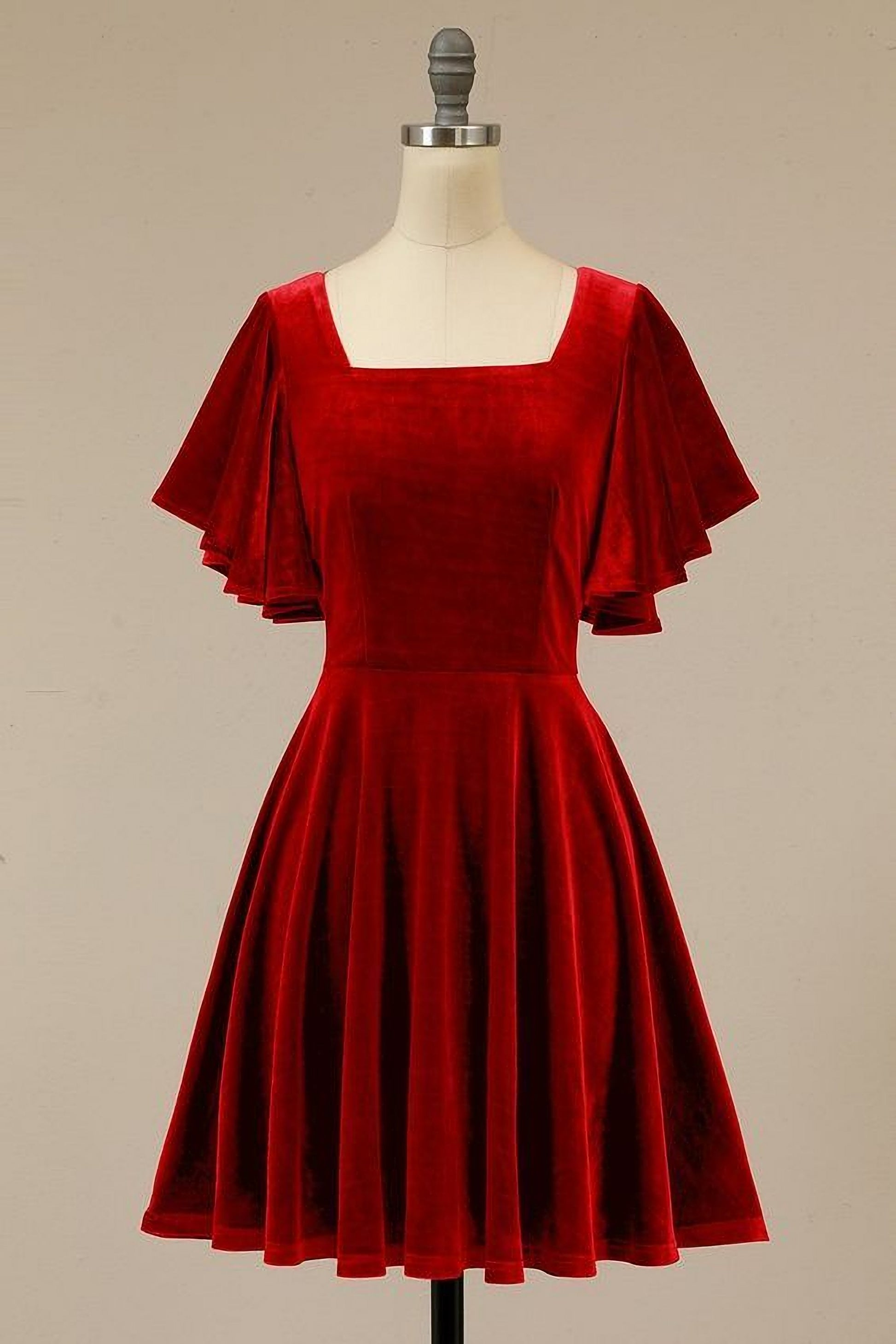 Burgundy Velvet Short Midi Bridesmaid Dress for Parties