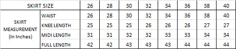 For Made to Measure Skirt, please provide your Actual Body Measurements in below format: