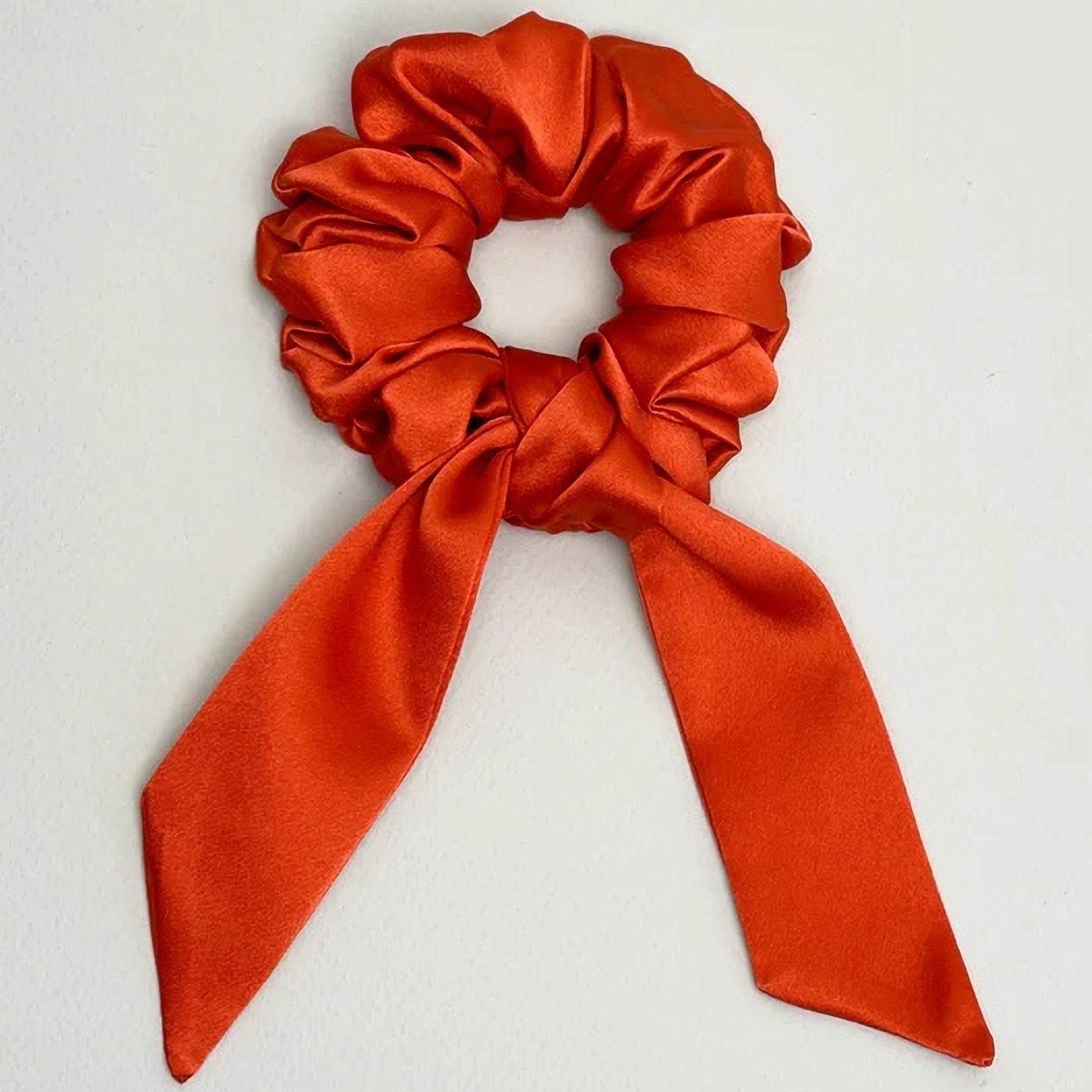 Classic, medium-sized, satin hair scrunchies, with a removable satin scarf, that is the perfect finishing touch and accessory to any outfit. Handcrafted by PRISTINE INDIA