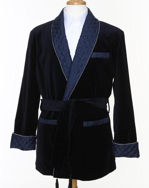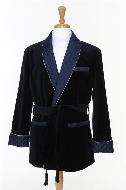 Mens Velvet Robe Quilted Lapel & Cuff