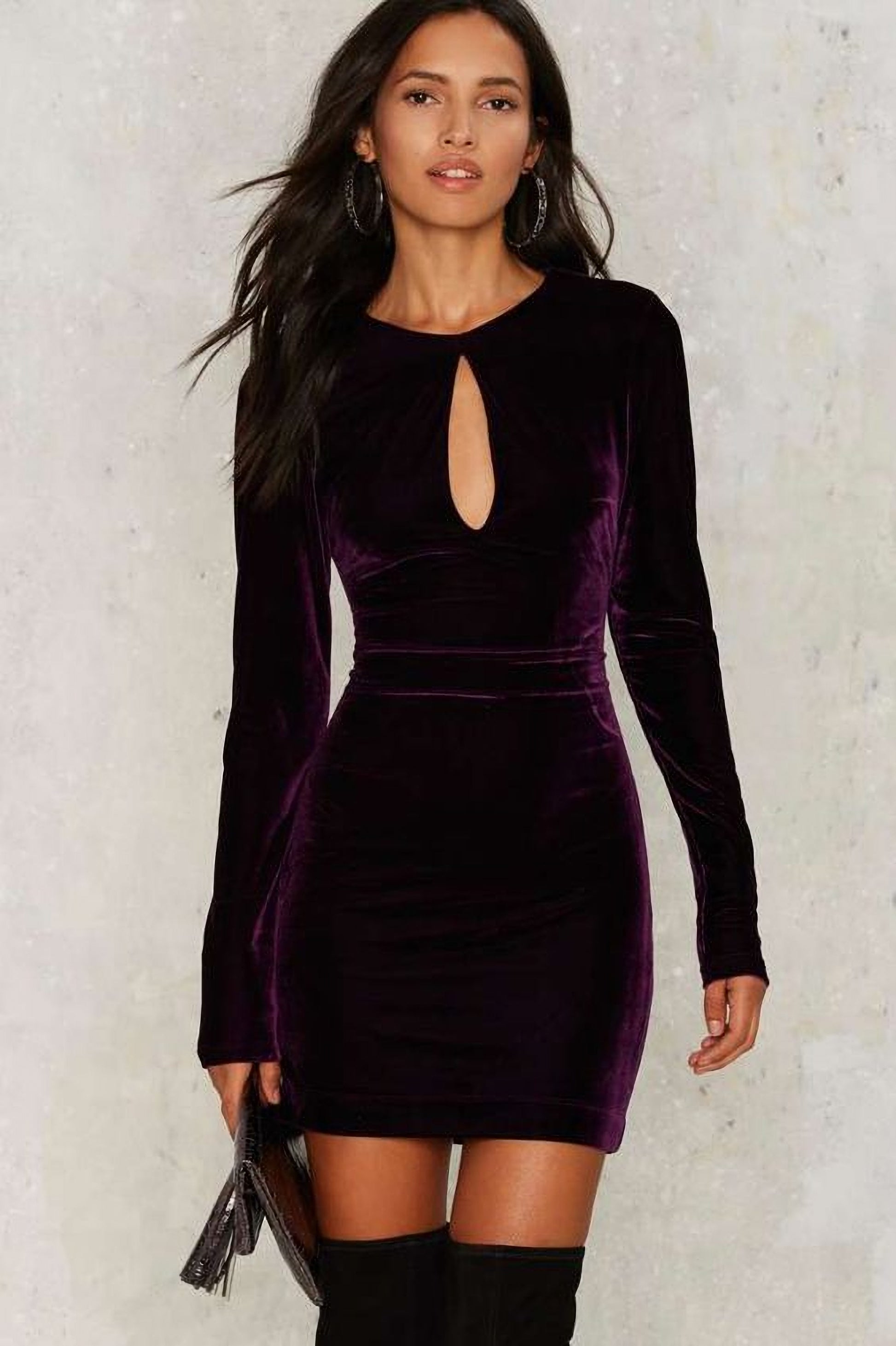 Purple Short Velvet Bodycon Dress for Cocktail Parties