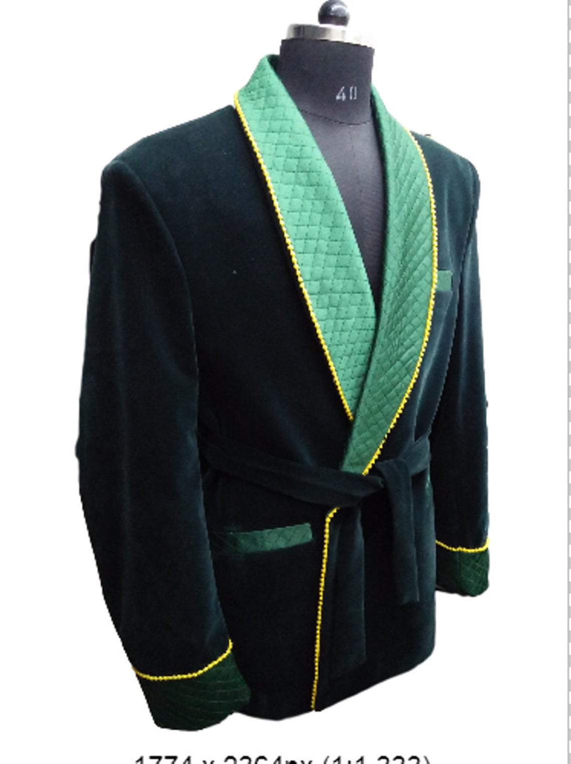 A Smoking Velvet Jacket come with two pocket, one breast pocket inner pocket. fully lined soft satin The jacket is use for many purpose like, Relaxing in evening, Dinner, Family Event, Birthday Handcrafted by Pristine India