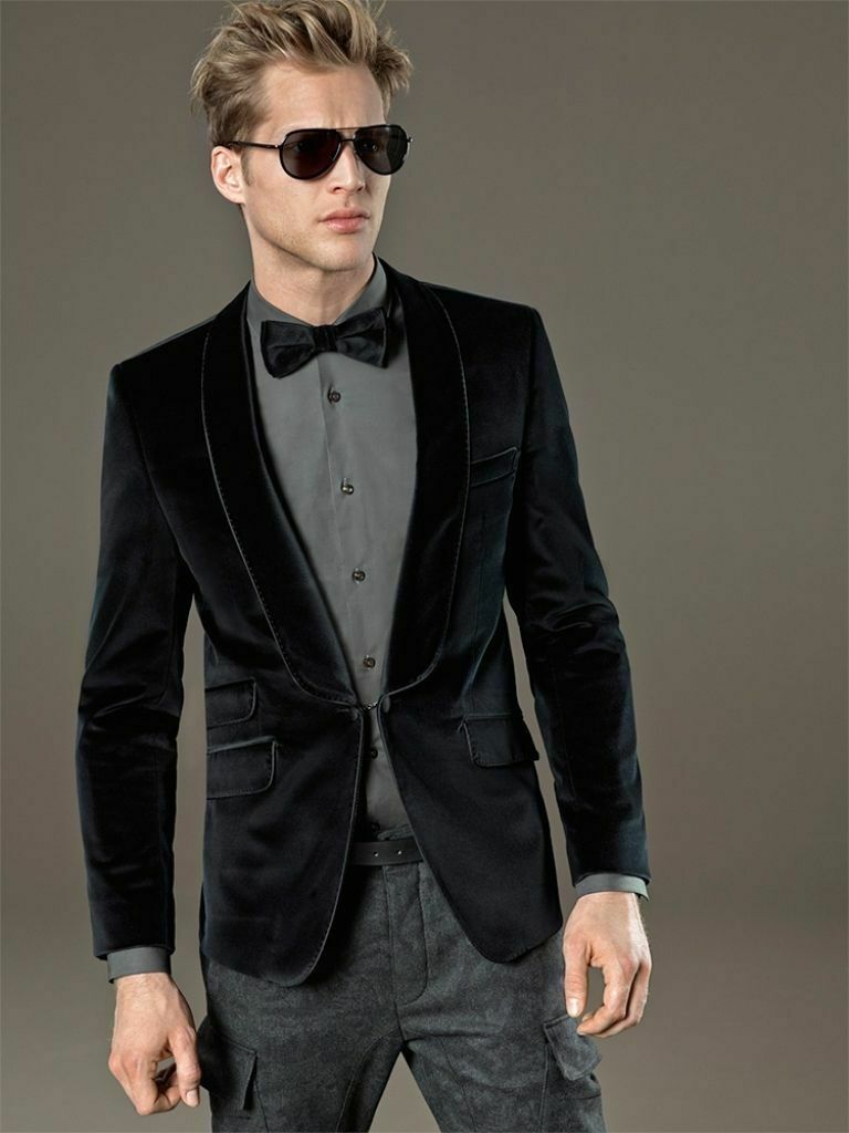 mens tuxedo black velvet dinner jacket is ideal for wedding, Party, Proms, and Etc. It is Perfect for hosting, smoking, lounging & all occasions. Perfect gift for the Perfect man or just as a personal treat Handcraft By Pristine India